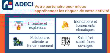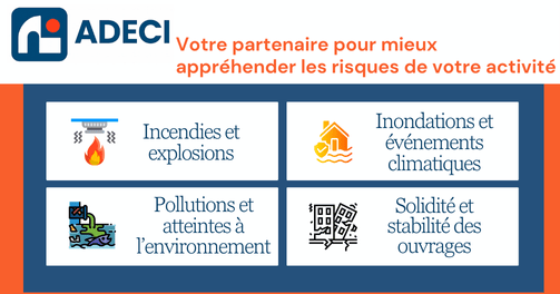 ADECI accompagne vos Assurés pour mieux appréhender les risques liés, générés et susceptibles d’être subis par l'activité, au travers de différentes missions d’audit des risques, de prévention, et de mise en place de plans de prévention et de suivi.